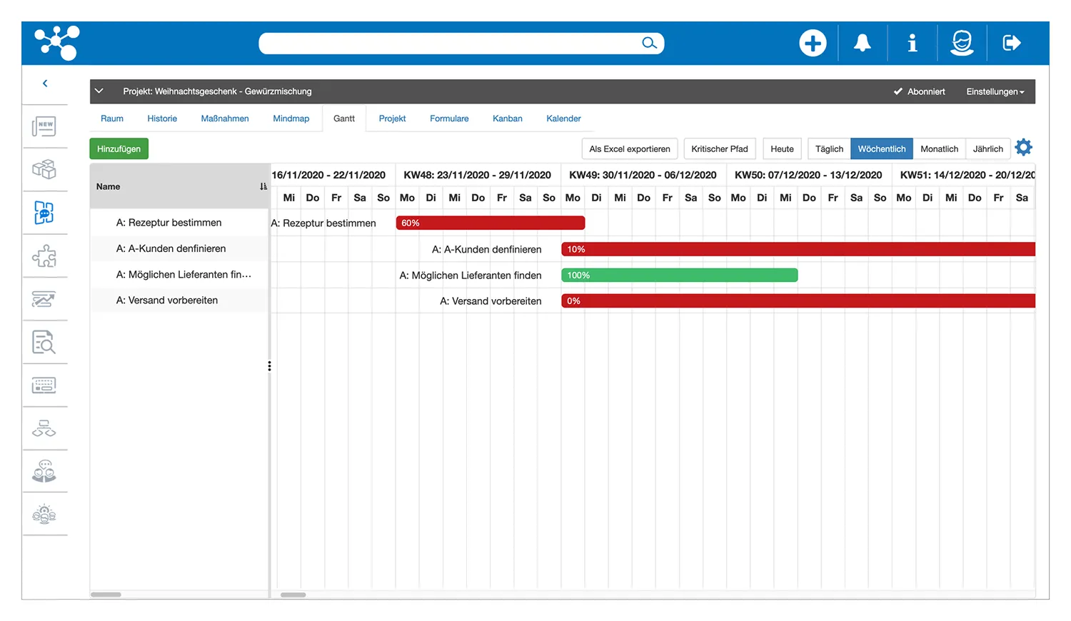 Ihnen stehen neben einem persönlichen Arbeitsbereich, in dem alle Aufgaben, Termine usw. zentral zusammenlaufen, auch ein übergreifender Projektmonitor für einen zentralen Überblick zu Verfügung. Dabei können Sie sich auf das Wesentliche konzentrieren und dadurch Ihren Projekterfolg sichern.