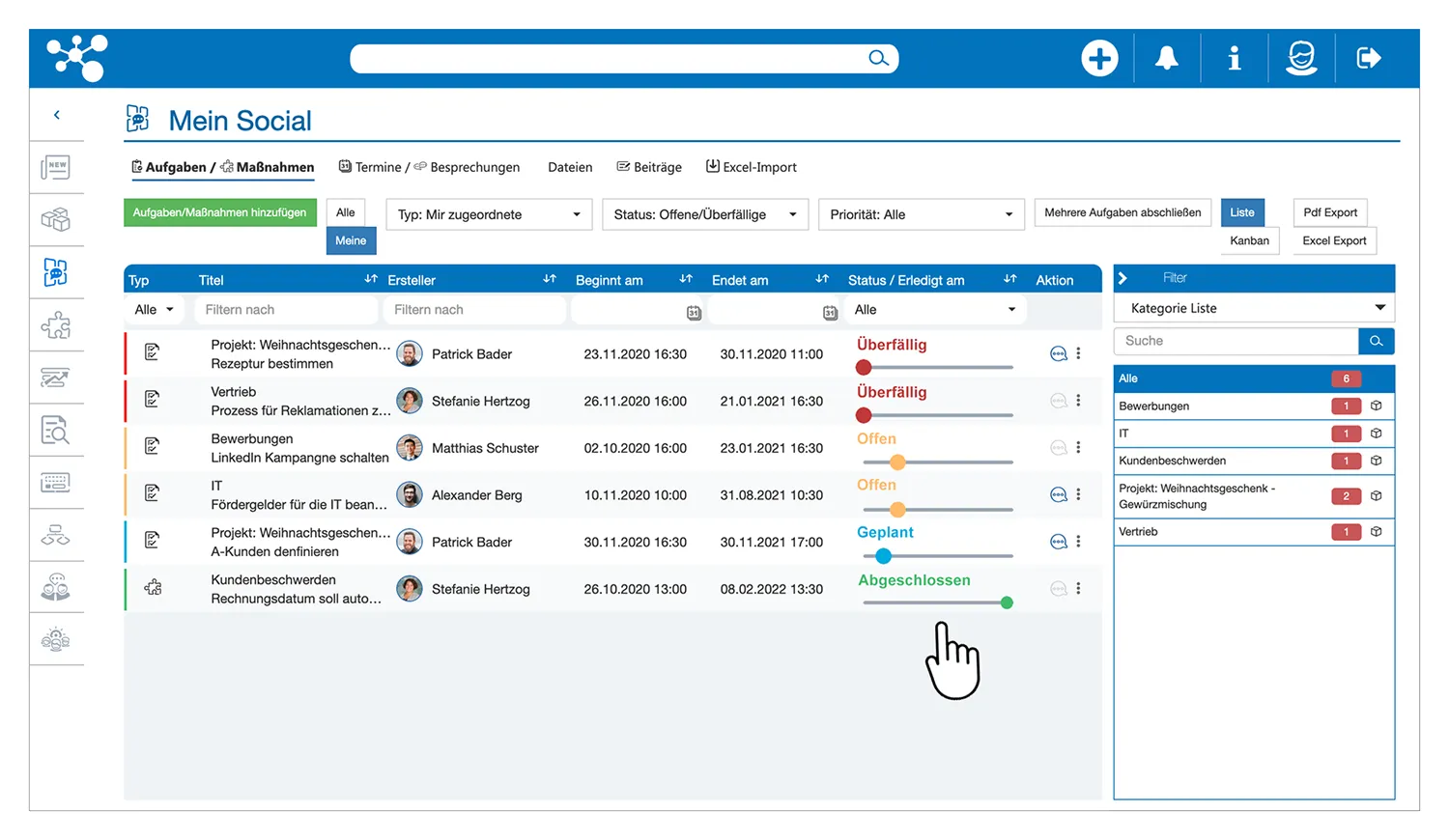 Volle Transparenz: Kennzahlen machen sichtbar, wie viele Aufgaben und Maßnahmen noch offen oder überfällig sind.