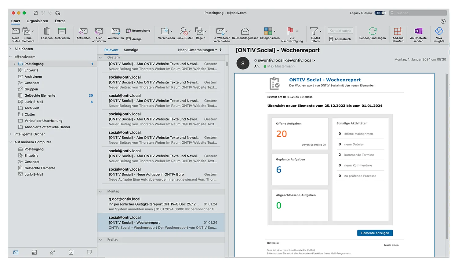 Automatische Erinnerung: Wöchentliche Reports per E-Mail zeigen, welche Aufgaben und Maßnahmen aktuell anstehen.